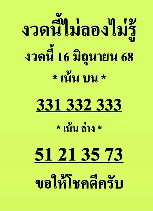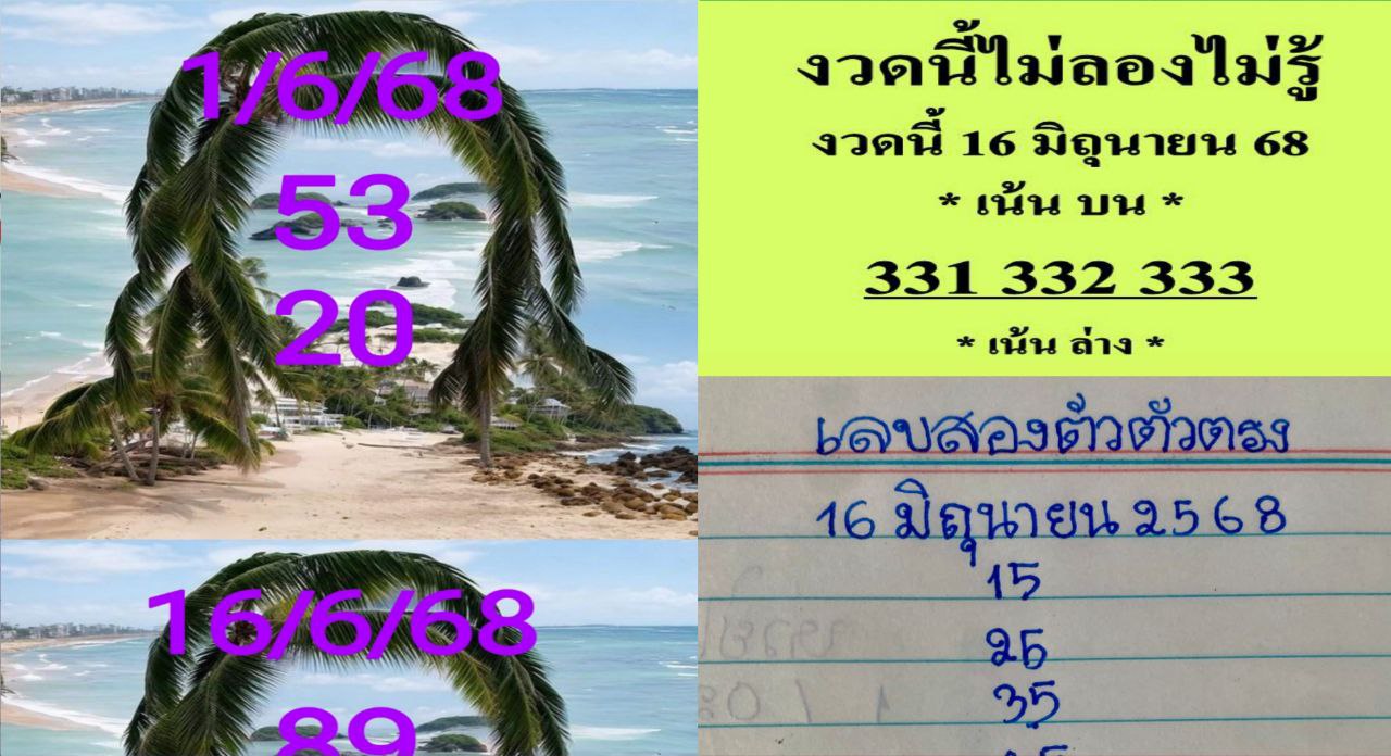 เลขเด็ด งวดนี้16/6/68 มาแล้ว สำหรับแนวทางข้อมูล หวยรัฐบาลไทย ชุด 2 ตัว 3 ตัวบนและล่าง หวยเด็ดเลขเด็ดงวดนี้ งวดประจำวันที่16/6/68ไปดูกันเลยว่างวดนี้ มีเลขเด็ดอะไรที่น่าสนใจกันบ้าง คอหวยเชิญรับชมกันได้เลยค